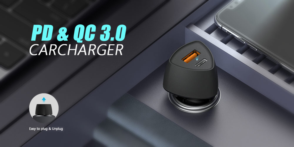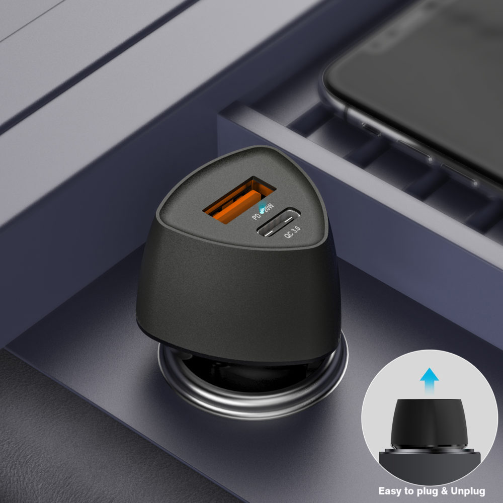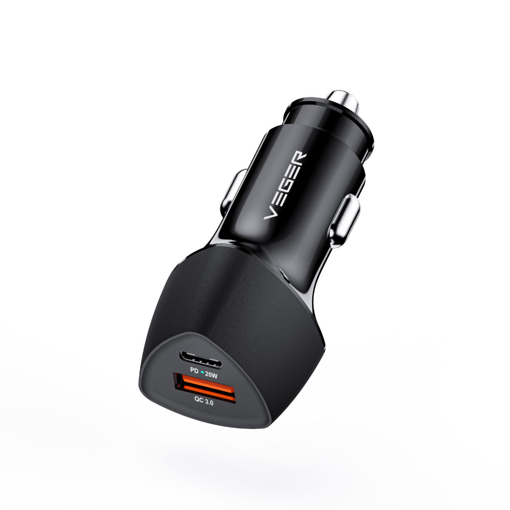 Veger Car Charger – Dual USB PD 38W Fast Charging – Black
