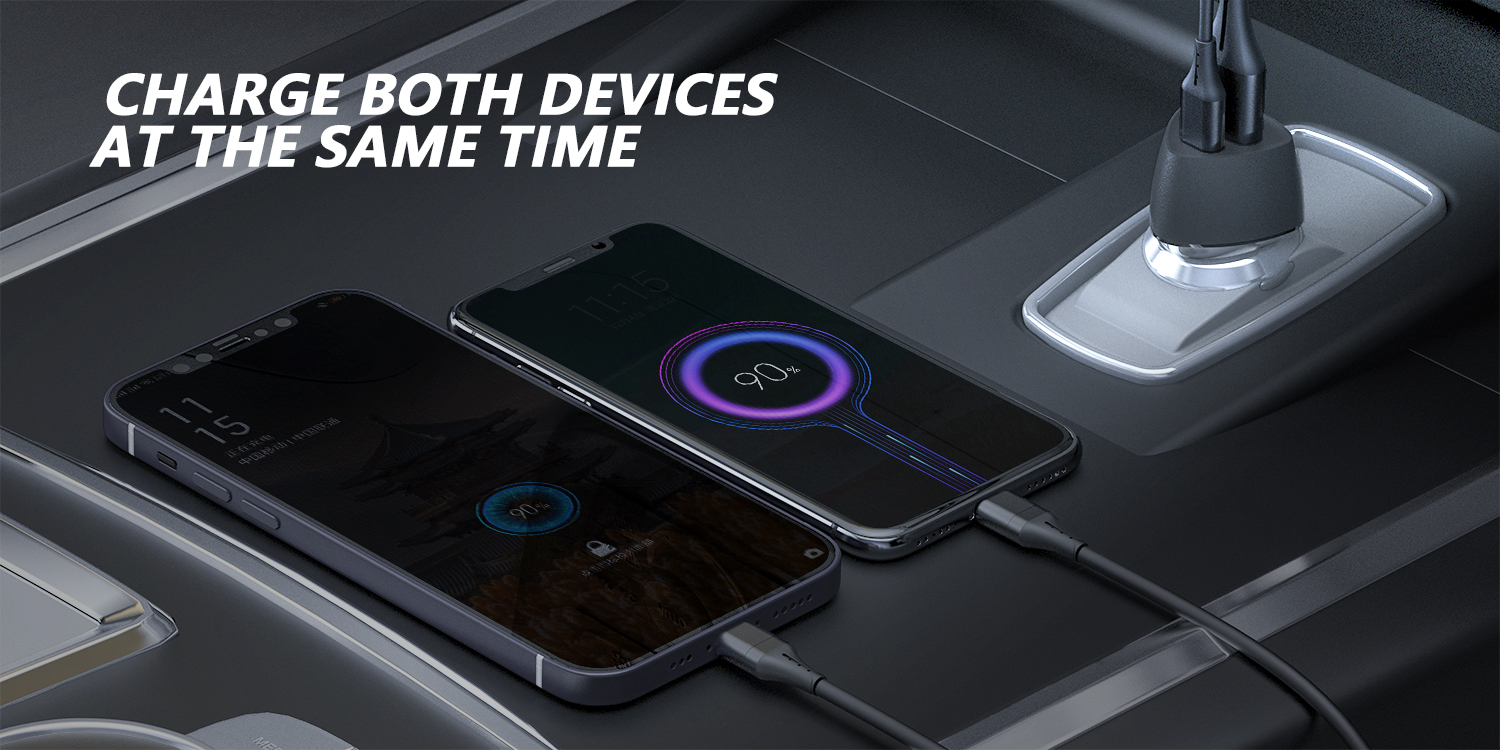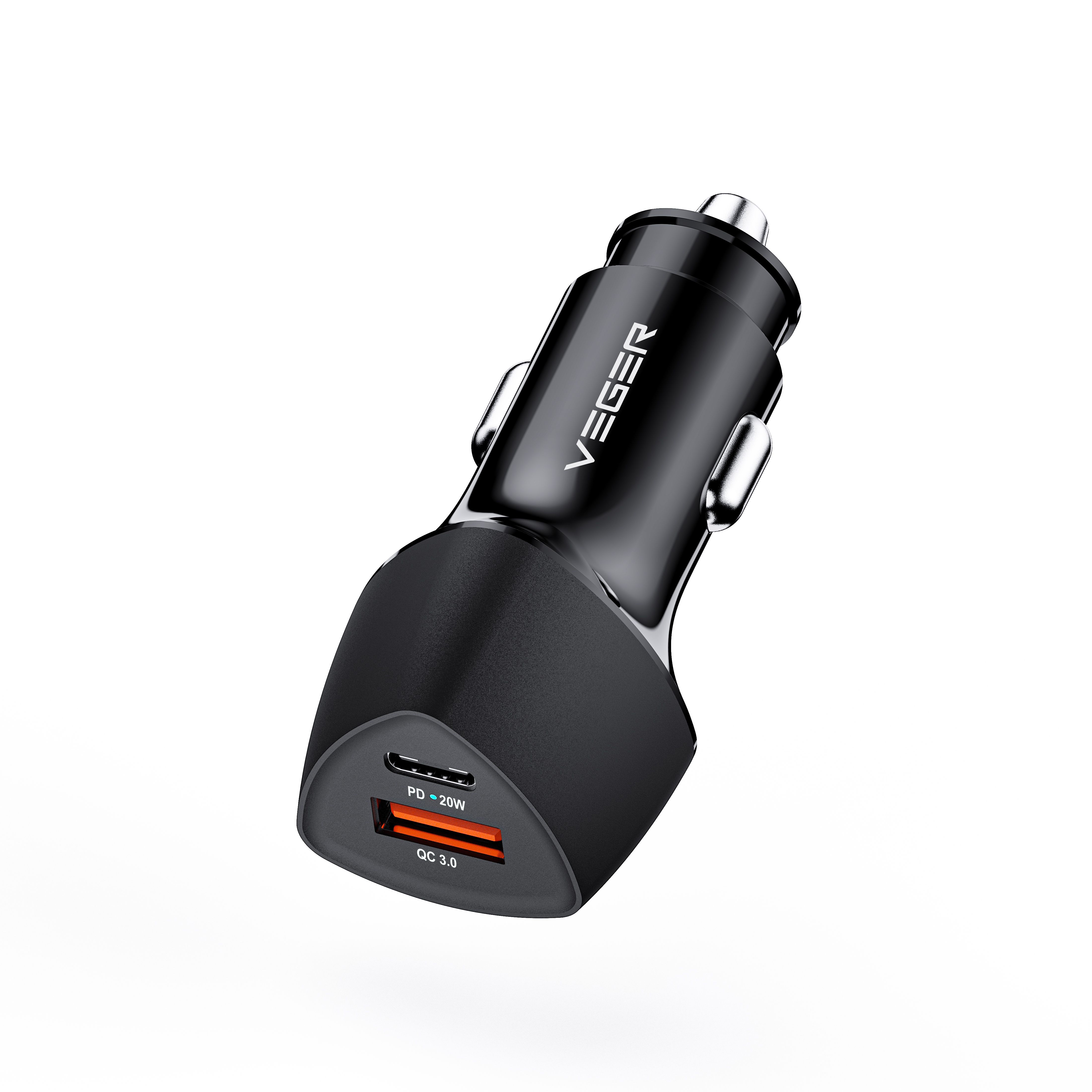 Veger Car Charger – Dual USB PD 38W Fast Charging – Black