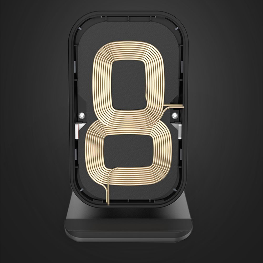 Product Parameters: Model: WX005 Input: 5V/2A 9V/1.67A Output: 5W MAX Transmission distance: >6-8mm Charging efficiency: 85% Packing size: 160x160x75mm LED Light: Green is standby, blue working. Colour: Matt Black