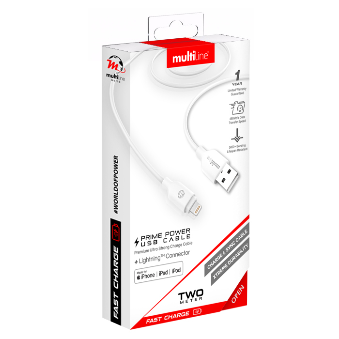 Multiline Prime Power Lightning (MFi) to USB Cable – 2 meter – MW-P200L