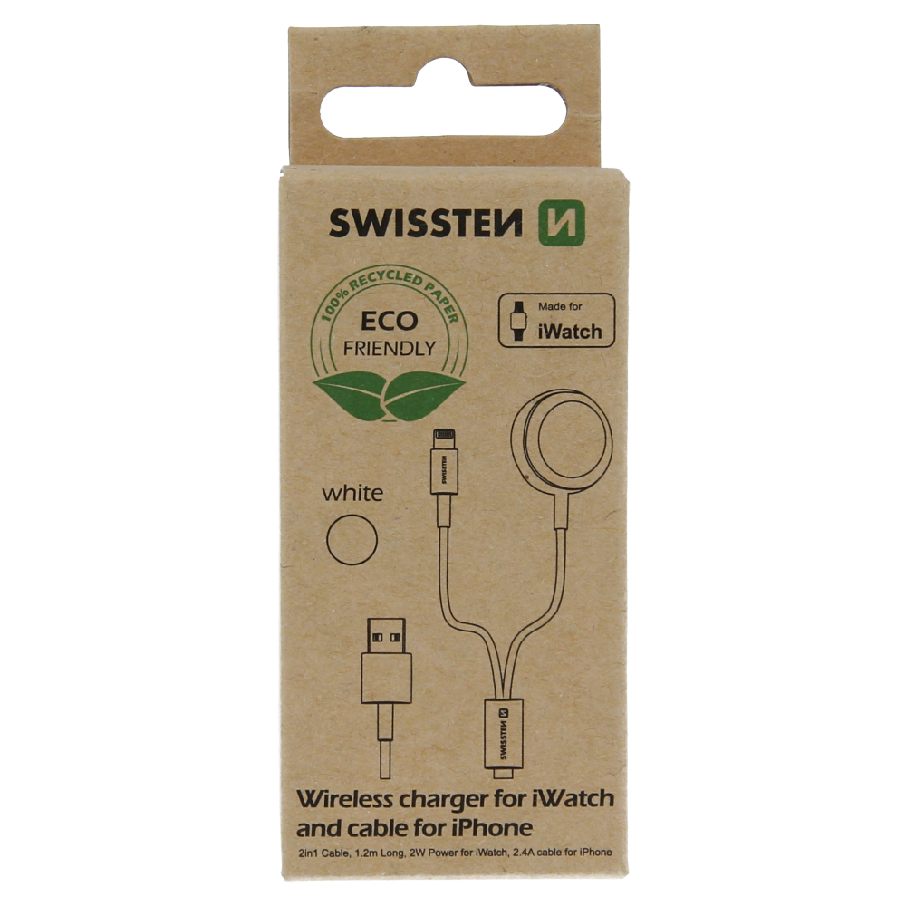 Swissten 2-in-1 Wireless Apple Watch Charger – 22055503ECO – Eco Packing – White